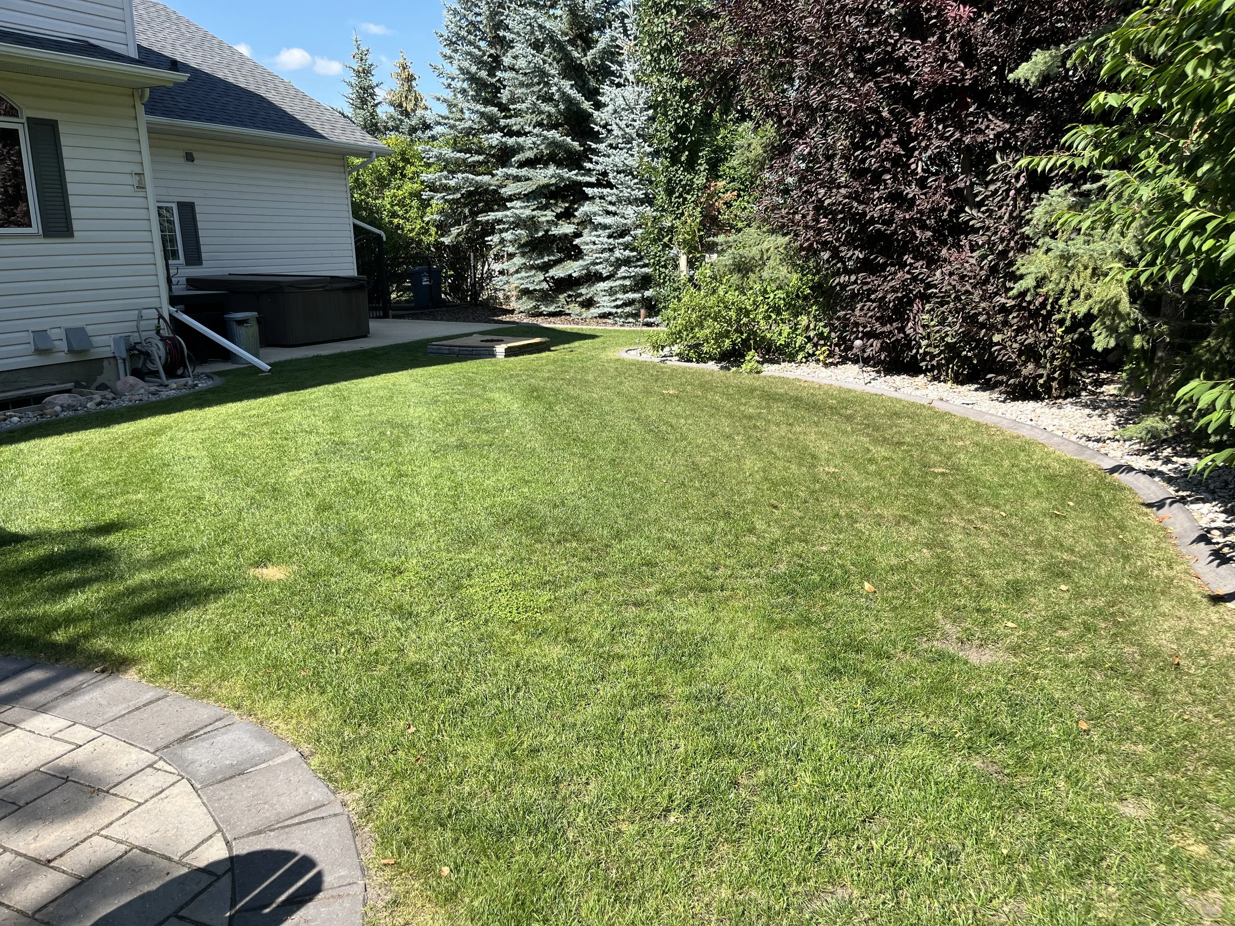First cut, vacuum, trim, edging and all hard surfaces blown off.